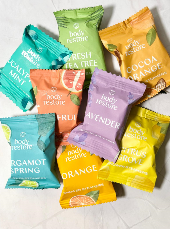 Body Restore Shower Steamers are proudly made in the USA with natural essential oils and clean ingredients, ensuring a pure and safe aromatherapy experience. Each steamer comes in high-quality packaging, delivering a strong and refreshing natural scent that enhances your self-care routine.